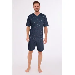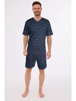Pánské pyžamo z kvalitní měkké bavlny. Tričko s krátkým rukávem, vzorované, s výstřihem do V. Krátké jednotné šortky. Baleno v krabici.