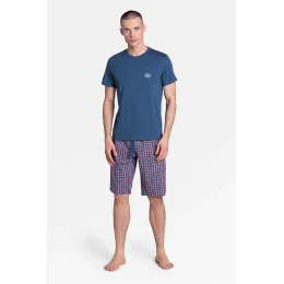 Pohodlné dvoudílné pyžamo Henderson z řady Premium ve sportovním stylu. Obsahuje tričko a kalhoty v délce pod kolena v lehkém, příjemném kostkovaném vzoru. Barevné schéma vychází z modrého základu s červenými vložkami. Nadčasové a pohodlné. Nejnovější kolekce. . Velikost M: hrudník 90-96 cm, pas 82-88 cm