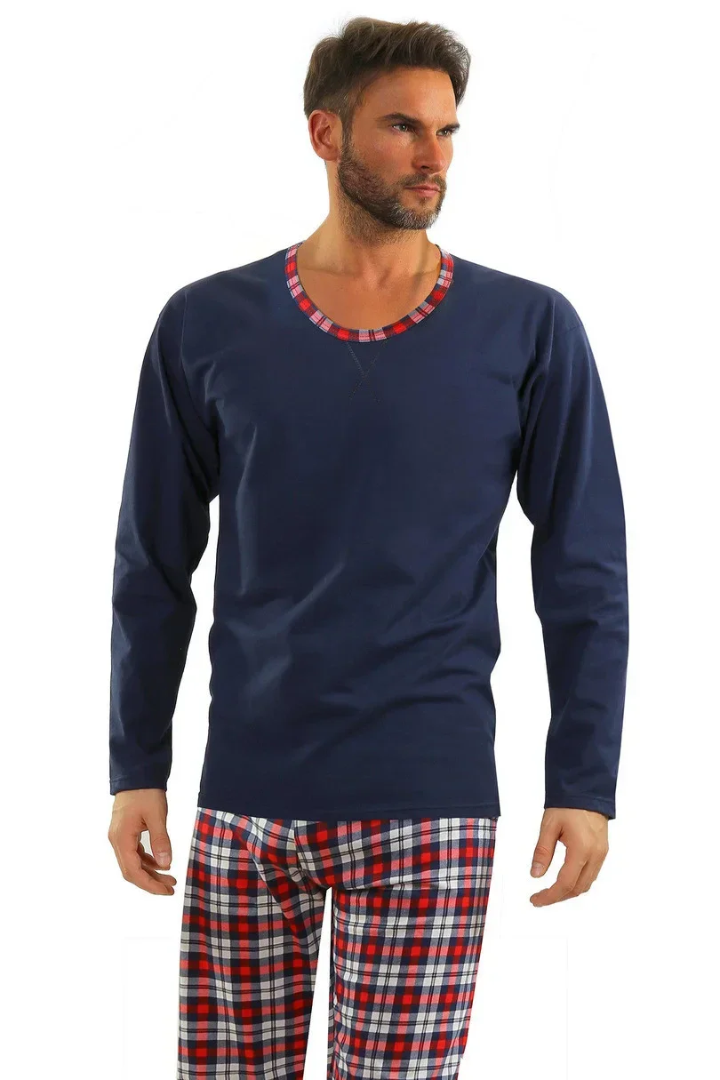 Pánské bavlněné pyžamo .Košile s dlouhým rukávem, kterou lze doplnit dlouhými kostkovanými kalhotami.