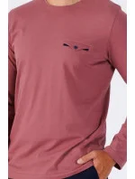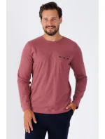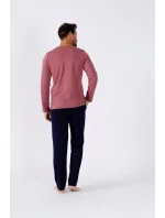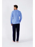 Pánské pyžamo z vysoce kvalitní bavlny, blůza s dlouhými rukávy a kulatým výstřihem, kapsička na hrudi, dlouhé rovné kalhoty.
