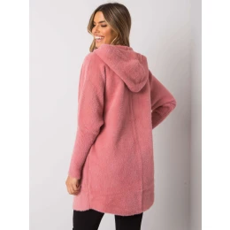 Růžový kabát z alpaky s kapucí.
