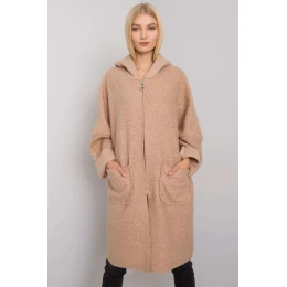 Černý dámský kabát s kapsami. Kabát na zip s kapucí.