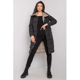 Černý prošívaný zimní kabát pro ženy se zapínáním na zip. Kabát je plně podšitý izolací. Posuvné kapsy na bocích.
