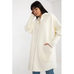 Dámský kabát s dlouhými rukávy a kapucí. Kabát na zip s velkými kapsami na zip.