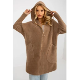 Dámský kabát s dlouhými rukávy a kapucí. Kabát na zip s velkými kapsami na zip.