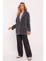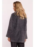 Dámský kabát vyrobený z plyšové pleteniny typu medvěd, s přeshraničním střihem, který zajišťuje pohodlí a styl. Zapíná se jedním ozdobným knoflíkem, který dodává eleganci, a vybavený našitými kapsami na přední straně, které spojují funkčnost s módním vzhledem. Kabát je celý podšitý, což zaručuje pohodlné nošení. Navržen a ušit v Polsku, je ideální volbou na chladnější dny.