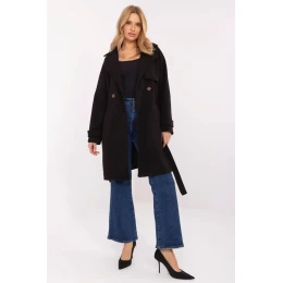 Kožený kabát pro ženy, ideální na každodenní nošení a do práce. Vyrobený z vysoce kvalitního polyesteru, je lehký a zároveň odolný. Kabát sahající před kolena se skvěle hodí na přechodné období, na podzim, zimu a jaro. Model bez podšívky a s podšitím zajistí pohodlí v chladných dnech. Dvouřadé zapínání na knoflíky a pás na uvázání v pasu umožňuje přizpůsobení a zdůraznění siluety. Jemné pásy na materiálu mu dodávají moderní charakter. Kabát je vybaven vloženými kapsami, které zvyšují jeho funkčnost. Ideální volba pro každodenní outfity, spojující eleganci s pohodlím.