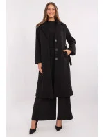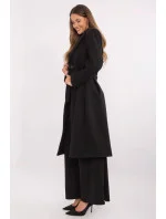 Elegantní dámský kabát je skvělou volbou na přechodné dny, kombinující styl a funkčnost. Vyrobený z polyesteru a elastanu poskytuje pohodlí a odpovídající pružnost. Kabát po kolena s dlouhými rukávy bude ideálním řešením jak pro každodenní nošení, tak i na společenské události nebo do práce. Drobné proužky na materiálu mu dodávají decentní, klasický charakter. Zapínání na knoflíky a jednobarevný střih s páskem k zavázání zdůrazňují eleganci, zatímco kapsy našívané a podšívka zajišťují pohodlí nošení. Jedná se o kabát, který spojuje moderní design s nadčasovou elegancí.