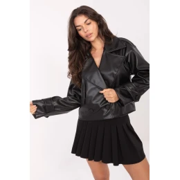 Krátký dámský trenčkot z ekokože je moderní verze klasiky, ideální jako přechodný kabát na podzim, zimu a jaro. Vyrobený z vysoce kvalitní směsi polyesteru a polyuretanu, vyniká hladkou fakturou a elegantním, ale zároveň casual stylem, skvělým pro každodenní stylizace. Model byl navržen s velkým límcem a širokými límci, které mu dodávají charakter. Dvojřadé zapínání na knoflíky zdůrazňuje klasický střih, a náramky na ramenou přidávají vojenský nádech typický pro trenčkot. Kabát má také podšívku, co zvyšuje pohodlí nošení a dělá celkový vzhled mimořádně pečlivým. Krátká délka a jednoduchý střih dělají z tohoto modelu univerzální kousek šatníku, ideální pro každodenní, městské stylizace s nádechem elegance.