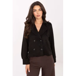 Krátký semišový kabát je stylovou nabídkou v casual stylu, ideální na každý den i do práce. Vyrobený z polyesterové směsi a elastanu spojuje pohodlí s elegantním vzhledem. Dvojitý řadový knoflíkový zapínání a límec sáčka mu dodávají klasický charakter. Ramenní náplety zdůrazňují moderní, trochu vojenský styl. Hladký vzor a krátká délka dělají kabát skvěle sladitelný s různými stylizacemi. Dlouhý rukáv ho činí praktickou volbou na chladnější dny podzim/zima/jaro. Přechodný model bez podšívky, skvělý jako lehký vrchní oděv. Jedná se o univerzální kabát, který spojuje jednoduchost s elegancí a skvěle doplní každodenní stylizace.