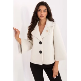 Krátký dámský kabát s elegantním charakterem, ideální na přechodnou sezónu podzim, zima a jaro. Vyrobený z vysoce kvalitní směsi polyesteru, viskózy a elastanu, vyznačuje se hladkou strukturou a pohodlným nošením. Model s límci, zapínán jednořadě na knoflíky, má praktické kapsy. 3/4 rukávy dodávají lehkost a ozdobná brož na límci zdůrazňuje elegantní styl. Bez podšívky, skvěle se hodí do každodenního i kancelářského stylu.