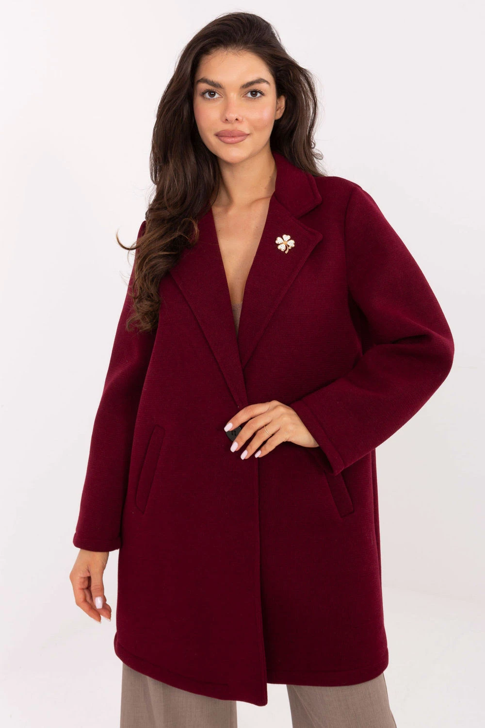 Elegantní dámský kabát vyrobený z moderního pěnového materiálu, ideální na přechodné období podzim, zimu a jaro. Vyrobený z polyesteru, viskózy a elastanu, potěší hladkou strukturou a odolností. Model s standardní délkou a límci, zapínáním na knoflíky, s dlouhými rukávy a praktickými kapsami. Stylovým akcentem je ozdobná brož na límci, která dodává celku výjimečný charakter. Lehký a nezateplený, skvěle se hodí do každodenních i pracovních stylizací.
