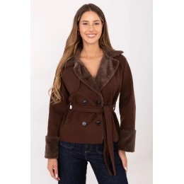 Tento elegantní dámský kabát s kožešinou je skvělou volbou na podzim/zimu, ideální jak do práce, tak i na příležitostnější události. Vyrobený z vysoce kvalitní směsi polyesteru a elastanu, poskytuje pohodlí nošení, trvanlivost a estetický vzhled. Model s kratším střihem vypadá velmi žensky a moderně. Má dlouhý rukáv, dvouřadé zapínání na knoflíky a pásek na přivázání v pasu, který krásně zdůrazní postavu. Hladká struktura materiálu a kožešina na dokončení dodávají celku elegantní charakter. Kabát je podšitý, co zvyšuje pohodlí nošení, i když nemá žádné další podšívky, je ideální na chladnější, ale ne mrazivé dny. Jedná se o stylový model pro ženy, které ocení klasiku v moderním podání subtilní, elegantní a dokonale zapadající do každodenních stylizací.