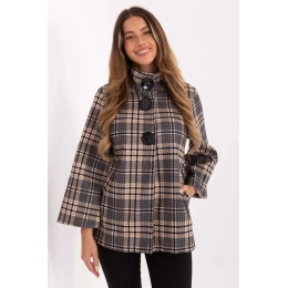 Elegantní a nadčasový dámský kabát v kostkovaném vzoru, který představuje ideální kombinaci elegance a klasického designu. Vyrobený z vysoce kvalitního polyesteru, je lehký, příjemný na dotek a skvěle se hodí do každodenních stylizací. Model standardní délky a jednoduchého střihu krásně padne na postavě, poskytující pohodlí a volnost pohybu. Zapínání na velké knoflíky dodává celku charakter a zdůrazňuje klasický styl kabátu. Stojka chrání před chladem a vsunuté kapsy jsou praktickým a elegantním završením. Tento elegantní kabát v kostkovaném vzoru je ideální volbou na chladnější dny, skvěle ladí jak s městskými, tak s sofistikovanými kombinacemi.