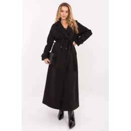 Dlouhý dámský kabát je elegantní nabídkou na přechodnou sezónu podzim, zima a jaro. Vyrobený z vysoce kvalitního polyesteru, v klasickém, hladkém vzoru, kombinuje styl a funkčnost. Model s límci, širokým límcem a dvouřadým zapínáním na knoflíky zdůrazňuje elegantní charakter každé stylizace. Kabát má vsunuté kapsy, pásek na vázání v pasu a podšívku, která zajistí pohodlí a komfort nošení. Skvěle se hodí jak do každodenních, společenských, tak i do kancelářských stylizací, přidávajíc eleganci a třídu každé ženě.