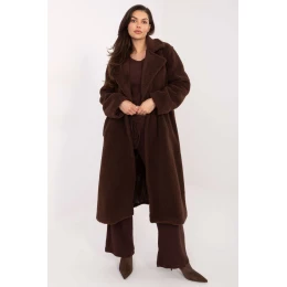 Elegantní dámský kožich typu beran je ideální volbou na chladnější dny podzim/zima. Udržovaný v casual stylu se skvěle hodí na každodenní příležitosti, poskytující pohodlí a módní, nadčasový vzhled. Jeho různorodá faktura materiálu dodává charakteristický, měkký a obálkový efekt typický pro beraní kožešiny. Model je vyroben z vysoce kvalitního polyesteru a jeho konstrukce nemá žádné dodatečné podšívky, což ho činí skvělým lehkým, stylovým kožichem na chladnější, ale ne extrémně studené dny. Uvnitř je podšívka, která zvyšuje pohodlí nošení a usnadňuje oblékání. Kožich má délku pod kolena, co mu dodává eleganci a chrání před chladem. Dlouhý rukáv, široký límec a odhalené klapy zdůrazňují jeho moderní charakter. Vepředu je dvojitý knoflíkový uzávěr doplněný praktickým páskem v pasu, který umožňuje přizpůsobit střih postavě a zvýraznit pas. Další výhodou jsou zapínací kapsy, ideální na drobnosti nebo zahřátí rukou. Jedná se o módní, efektní a pohodlný kožich, který skvěle doplní podzimně-zimní outfit.