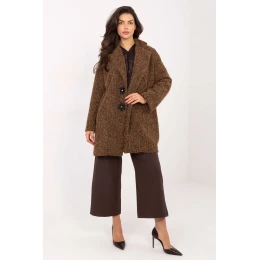 Tento elegantní, přechodný dámský kabát je stylovým návrhem na podzimní, zimní a jarní sezónu. Vyrobena z polyesterové látky s různorodou fakturou, vyniká moderním vzhledem a pečlivým zpracováním. Model přes koleno má dlouhý rukáv a klasické zapínání na knoflíky, co zdůrazňuje jeho nadčasový charakter. Kabát je vybaven pohodlnou podšívkou, která zajišťuje pohodlí nošení, a zapínací kapsy dodávají funkcionalitu. Odepínatelné brože představují decentní, ozdobný akcent, díky kterému získává stylizace výjimečný, ženský charakter. Jedná se o univerzální model, který se hodí jak do každodenního nošení, tak do práce nebo na slavnostní příležitosti.