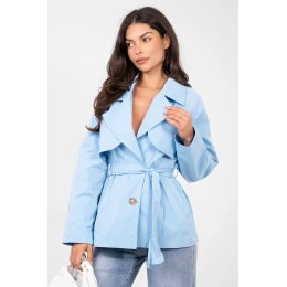 Elegantní dámský trenčkot v casual stylu, ideální na každodenní nošení i do práce. Přechodný model, který se hodí na podzim, zimu i jaro. Hladký vzor zdůrazňuje nadčasový charakter trenčkotu a krátká délka mu dodává moderní a lehký vzhled. Vyrobený z vysoce kvalitního polyesteru, lehký a pohodlný na nošení. Trenčkot má dlouhý rukáv, zapínání na jednořadé knoflíky a pásek na vázání v pasu, který umožňuje přizpůsobit střih postavě a zdůraznit ženskou siluetu. Praktické kapsy dodávají funkčnost a každodenní pohodlí. Univerzální volba do práce i na denní nošení, která kombinuje klasiku s moderním stylem.