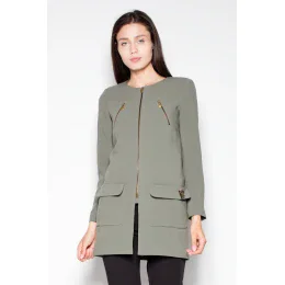 Rovně střižený kabát na zip s ozdobnými kapsami a nápadným rozparkem na zipu. Ozdobné zipy na manžetách a límci. Skvěle se hodí pro každodenní styling.