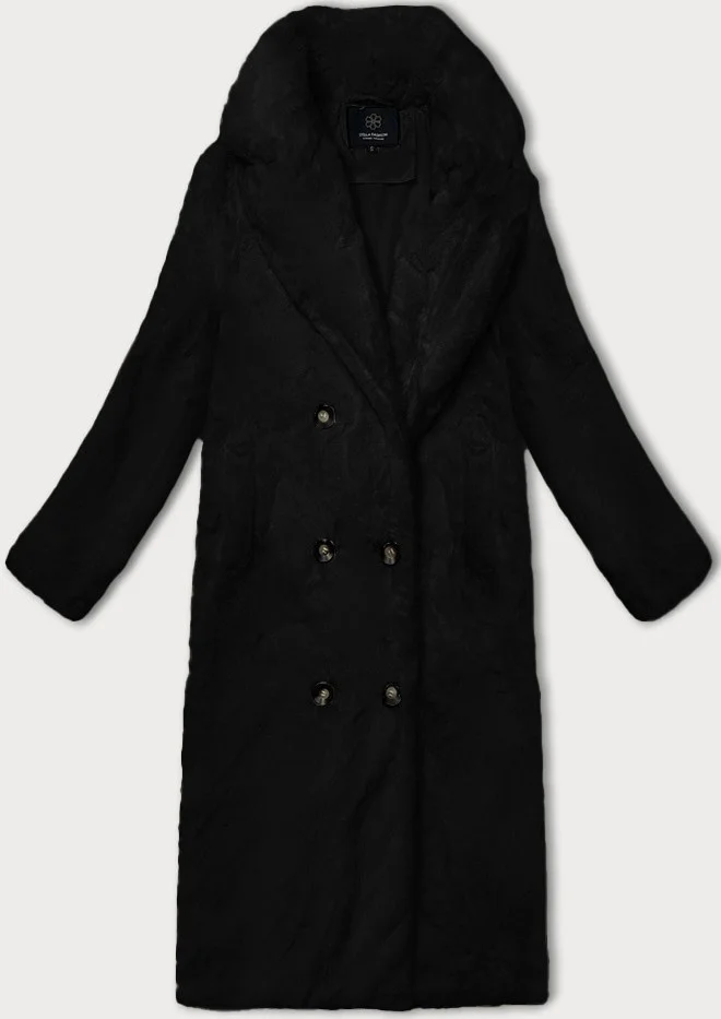 Černý dámský kožešinový kabát s límcem (WD2332)