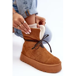 Dámské sněhule jsou jako stvořené do mrazivých dnů. Vyrobeno z ekologického semiše. Postaveno na silné platformě. Zateplené ovčí kůží. Nazouvací model. Svršek zdobený šněrováním. Při výběru velikosti se řiďte tabulkou velikostí.