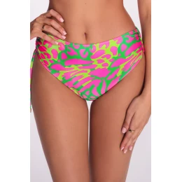 Zvýrazněte svou siluetu a dodejte svému vzhledu šmrnc s kalhotkami SF 246/2 Neon Safari. Tyto kalhotky jsou navrženy tak, aby opticky tvarovaly a ukazovaly vaše nohy, a mají nastavitelné boční vázačky s ozdobnými konci, takže můžete upravit výšku střihu pro sexy nebo více zakrytý vzhled. Neonový potisk v zářivě růžové, limetkově zelené a jemné béžové barvě vytváří svěží, exotický efekt, který se hodí k prázdninové náladě.