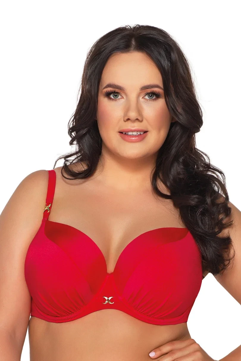Energická červená barva dokonale ladí s letním opálením! Třpytivý úplet obohacený o zlaté doplňky podtrhne tón pleti a rozzáří plážový outfit. Podprsenka s plnými košíčky pevně shrne a podrží i ta nejneposednější ňadra, zatímco jemné řasení navíc obepne poprsí. Nezapomeňte soupravu doplnit multifunkčními plavkovými kalhotkami SF 180/2 s výškově nastavitelnými bočními ramínky.
