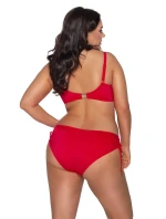 Energetyczna czerwień idealnie współgra z letnią opalenizną! Dzianina ze skrzącym połyskiem wzbogacona o złote dodatki podkreśli koloryt skóry i rozświetli plażowy outfit. Pełne miski biustonosza full cup solidnie zbiorą i podtrzymają nawet najbardziej niesforny biust, a delikatne marszczenia dodatkowo wizualnie zaokrąglą biust. Do kompletu dobierz koniecznie wielofunkcyjne figi kąpielowe SF 180/2 z regulującymi wysokość boczków troczkami.