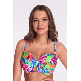 Výrazný letní potisk v intenzivních odstínech zelené, modré, růžové a oranžové upoutá pozornost a zvýrazní vaše opálení, což je ideální pro ženy, které mají rády výrazný styl a chtějí vyniknout. Nastavitelná ramínka a zapínání na zádech umožňují podprsenku dokonale přizpůsobit vaší postavě.