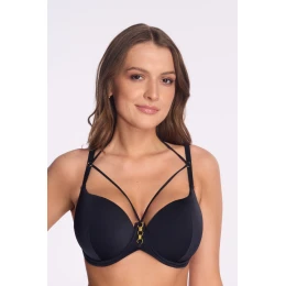 Plavková podprsenka SK 253 Black v designu Half Cup je smyslnou volbou pro ženy, které ocení eleganci, dokonalé pozvednutí poprsí a módní design. Vyztužené tvarované košíčky s nižším střihem decentně odhalují horní linii poprsí a atraktivním způsobem modelují a zaoblují prsa.