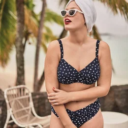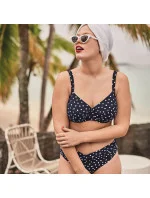 Bikiny ''Blue Dots'' Liz Bottom z řady Mix & Match vynikají svými roztomilými překříženými nabírkami v pase. Zářivé bílé puntíky dodávají francouzský nádech a skvěle se hodí k různým topům.