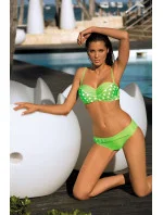 Plavky mají sexy a velmi pohodlnou podprsenku typu bardotka. Horizontální linie střihu umožňuje dosáhnout smyslného vzhledu a maximální elegance. Košíčky jsou vyztužené, obohacené o podvazky (horizontální a vertikální), doplněné kapsičkami na přiložené push-up košíčky (k dispozici ve velikostech S, M, L, XL) - umístěte je do podprsenky a vaše prsa se opticky zvětší o více než jednu velikost. Konstrukce také umožňuje dokonale pozvednout prsa a přiblížit je k sobě. Zadní část podprsenky se zapíná na přezku. Ramínka mají nastavitelnou délku a lze je zcela odepnout (můžete je odepnout na opalování).
