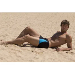Módní, sportovní pánské plavky se zajímavým lampasem na stehně. Modrá barva s černou, zajímavě, atraktivně zdobí tělo. V pase je guma a šňůrka, pomocí které si můžete obvod dále upravit podle svých potřeb. Italský, elastický, vysoce kvalitní úplet podepsaný logem jednoho z nejlepších polských výrobců Marko Collection.