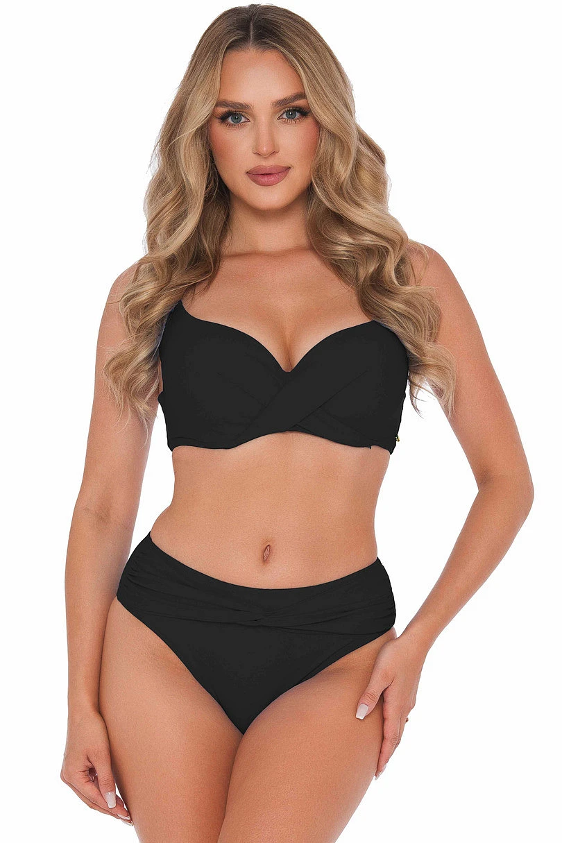 Vyztužená podprsenka tvaruje a podpírá poprsí pro atraktivní a stabilní vzhled. Nastavitelná a odepínací ramínka umožňují přizpůsobit plavky individuálním preferencím a zapínání na zádech zvyšuje komfort používání. Klasicky střižený spodní díl s jemným řasením dodává eleganci a opticky tvaruje siluetu.