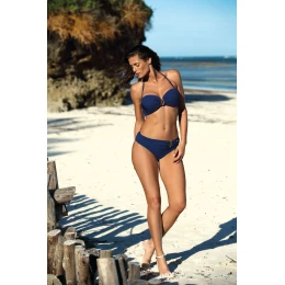 Podprsenka bandeau má vyztužené košíčky (bez push-up efektů) a košíčky s kosticemi, které tvarují dekolt a udržují prsa ve správné poloze. Ramínko za krk je odnímatelné. Plavky mají vzadu elastický pásek se zavazováním. Spodní díl je velmi pohodlný a vpředu ho zdobí bižuterní pásek. Plavky jsou vyrobeny z kvalitní italské látky, díky které jsou velmi elegantní. Vyberte si je a určitě prožijete úspěšnou dovolenou! Složení: 80 % polyamid, 20 % elastan.