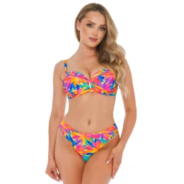 Postaw na energetyczne kolory i kobiecy krój z kostiumem kąpielowym Capri 5 od marki SELF. Ten wyjątkowy strój typu bardotka przyciąga wzrok intensywnym, kwiatowym wzorem w żywych odcieniach różu, pomarańczu, turkusu i fioletu. Biustonosz z usztywnianymi miseczkami delikatnie podtrzymuje i modeluje biust, a regulowane ramiączka z mikrofibry i zapięcie na plecach gwarantują idealne dopasowanie. Klasyczne figi zapewniają wygodę i pełną swobodę ruchów. Ten kostium to must-have każdej modnej kobiety na lato!