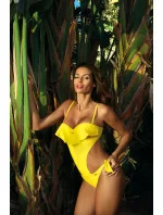 Velmi sexy jednodílné plavky monokiny s brazilskými zády. Hladké, s malou zlatou bižuterní mašličkou ve výstřihu a koketním volánkem v momentálně nejmódnějším kubánském stylu. Ženské, jemné, smyslné... Přivítejte jeden z nejžhavějších modelů sezóny!