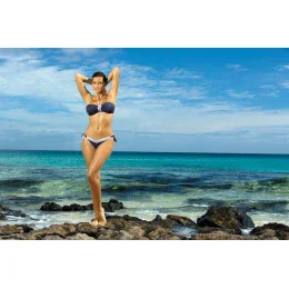 Špetka koketnosti, která nikdy nevyjde z módy, to jsou plavky Emily zvýrazněné drobnými hrášky. Inspirovány stylem Marilyn Monroe svádějí a fascinují. Dobře strukturovaná podprsenka: s vyztuženými košíčky, které mají navíc (vyjímatelnou) push-up výplň ve velikostech S, M, L, XL. Ponechaná na místě dodá ňadrům sexy objem. Ramínka se zavazují za krkem a jsou zcela odnímatelná (skvělý model na opalování). Jemný volánek uprostřed. Podprsenka se zavazuje na zádech.