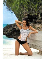 Krásné dvoudílné plavky s dobře tvarovanými košíčky, které vytvářejí svůdný dekolt. Košíčky jsou dobře vybarvené pro prsa, tvarují je a zároveň je vypínají. Košíčky jsou z vnitřní strany vyztužené a byly obohaceny o vestavěnou push-up výplň (k dispozici ve všech velikostech), s bočními velrybími kosticemi. Krásné lemování okamžitě upoutá pozornost. Ramínka s broží, elegantní, zavazují se za krkem. Pas se pohodlně zavazuje na zádech. Ve spodní části - jemně nařasená látka, která podtrhuje výjimečnost plavek. Kalhotky s přídavným páskem, který vede kolem boků. Měkké, podšité. Jedná se o dokonale zpracovaný model.