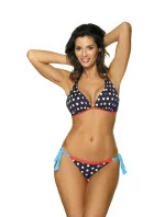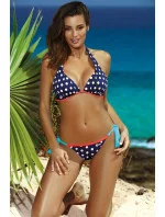 Podprsenka s výstřihem a'la Marilyn Monroe, vyztužená a s bočními velrybími kosticemi, dokonale sbírá prsa, tvaruje je a krásně prezentuje dekolt. Design je okouzlující, ženský, jemný, přesto s charakterem. Ramínka se zavazují za krkem, obvod se vzadu zapíná na přezku. Kalhotky jsou dokonale sladěné s podprsenkou, zavazují se na bocích na mašličky, ve šťavnaté barvě. Nádherně zdobí boky, poskytují spoustu pohodlí, protože mají parádní, bokový střih. Perfektní plavky pro ženu, která chce na pláži prostě vypadat skvěle.