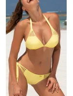 Krásné dvoudílné plavky s dobře tvarovanými košíčky, které vytvářejí svůdný dekolt. Košíčky jsou dobře vybarvené pro prsa, tvarují je a zároveň je vypínají. Košíčky jsou z vnitřní strany vyztužené a obohacené o vestavěnou push-up výplň (k dispozici ve všech velikostech), s bočními velrybími kosticemi. Krásné lemování okamžitě upoutá pozornost. Ramínka s broží, elegantní, zavazují se za krkem. Pas se pohodlně zavazuje na zádech. Ve spodní části - jemně nařasená látka, která podtrhuje výjimečnost plavek. Kalhotky s přídavným páskem, který obepíná boky. Měkké, podšité.