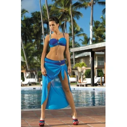 Oto kostium kąpielowy, który doda Ci seksapilu i wdzięku! Biustonosz posiada usztywniane miseczki, które doskonale unoszą, modelują i podtrzymują piersi. Do rozmiarów S, M, L, XL dodawane są poduszeczki push up, (można je wyjąć), które dodatkowo optycznie powiększają biust.Biustonosz otulono dwukolorową tkaniną o wysokiej jakości, dzięki temu kostium ładnie współgra z opalenizną. Pośrodku umieszczono elegancką, pozłacaną broszkę. Biustonosz posiada fiszbiny dolne oraz boczne, zapinany jest na klamerkę. Atutem są regulowane ramiączka, które można odpiąć w razie potrzeby.W zestawie finezyjne majteczki, ozdobione z przodu dwukolorowym a’la paseczkiem z ozdobną broszką. Figi posiadają gładki tył, nie prześwitują i dobrze przylegają do ciała.