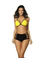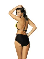 Jeden z najlepszych kostiumów kąpielowych tego lata. Góra oparta na kroju bikini, z usztywnianymi miseczkami, bez fiszbin, dół - to nowość! - wysokie figi z "pęknięciami" po bokach. Załóż go a od razu się w nim zakochasz! Biustonosz posiada dołączone do zestawu poduszeczki push up, są wyjmowane z modelu, i dostępne w rozmiarach S, M, L. Pozwalają unieść, ujędrnić i wymodelować piersi, dodając im objętości. Ramiączka i obwód są wiązane. Figi w kolorze czarnym, kuszą prześwitami po bokach, które sprawiają, że nogi wyglądają na dłuższe i jeszcze bardziej sexy. Fason kryje brzuszek, co stanowi jedną z największych zalet tego kostiumu. Tak modny krój, śliczna kolorystyka, seksowny (i wygodny) fason fig i taka cudowna niespodzianka! Wypróbuj!