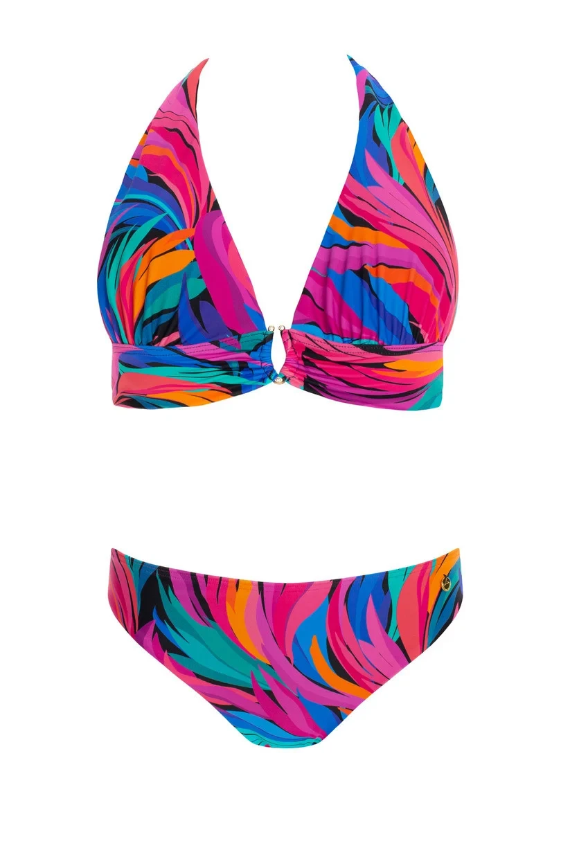 Cechą charakterystyczną tego stroju jest wiązanie na szyi, które pięknie eksponuje ramiona i dekolt, dodając całości lekkości i kobiecego uroku. Regulowane ramiączka z mikrofibry są przyjemne w dotyku i zapewniają idealne dopasowanie. Konst