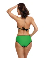 Černá elastická ramínka ve výstřihu, ozdobné lemování pod poprsím, proužky na bocích, květy a vysoký spodní díl s nízkým sedem, který vám zaručí naprosté pohodlí, a to není všechno... Podprsenka má vyztužené košíčky s push-upkou, díky které můžete pěkně shrnout a vytvarovat svá ňadra a krásně je prezentovat ve výstřihu. Push-upka je v modelu umístěna napevno, z plavek se nevyjímá a je v každé velikosti. Podprsenka se zavazuje jako bikiny - na zádech a za krkem. Květinový vršek pěkně doplňuje hladký spodní díl. Krásné barvy a italská látka nejvyšší kvality. To je ono!