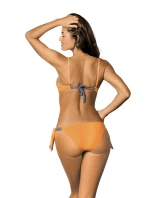 Hladké dvoudílné plavky se vzorovaným lemováním a skvělými barvami. Velmi ženské. Košíčky podprsenky byly profesionálně vymodelovány a vyztuženy - dobře sbírají prsa, zvedají je a díky podšití a push-up výplni je ještě opticky zvětšují. Hluboký výstřih - mírně prohloubený, ale stále velmi elegantní a vyvážený. Ramínka jsou nastavitelná. Pásek se tentokrát pohodlně zavazuje na zádech. Kalhotky se zavazují na bocích. Plavky vypadají opravdu skvěle a zajistí vám naprosté pohodlí na pláži.