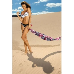 Buďte sexy na pláži! Sharon jsou plavky, které modelují vzhled prsou a zároveň vypadají výjimečně úchvatně. Podprsenka má vyztužené košíčky s kosticemi, které mají navíc (vyjímatelnou) push-up výplň ve velikostech S, M, L, XL, která při ponechání v podprsence nádherně zvětší prsa o jednu velikost. Ramínka jsou nastavitelná a zcela odepínací (skvělý model na opalování). Celek je pokrytý měkkou, velmi pěknou látkou s hvězdičkami... Zadní část je hladká (černá).