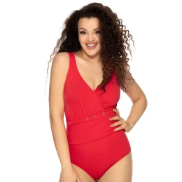 Zdánlivě obyčejné jednodílné plavky získávají efektní proměnu díky asymetrickému řasení a ozdobnému pásku v pase. Intenzivní červená barva upoutá pozornost. Všité košíčky s kosticemi stabilizují poprsí. Zadní díl je hluboce vykrojený.
