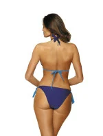 Skvělý střih podprsenky umožňuje pěkně shromáždit ňadra, pozvednout je a dodat jim žádoucí, atraktivní tvar. Základem střihu je podprsenka vyztužená jemnou pěnou, s push up výplní, umístěná ve spodní části, bez kostic, typu "sexy bikiny". Výstřih s ozdobnou šňůrkou. Obvod i ramínka se pohodlně zavazují, což umožňuje plavky dokonale přizpůsobit vašim potřebám. Ocenit si zde zaslouží i báječné barevné provedení. Rezervujte si je pro sebe! Spodní díl se svůdně zavazuje na bocích, vypadá krásně a žensky, má parádní, pohodlný střih. V horní části je na látce sladké, ozdobné řasení.