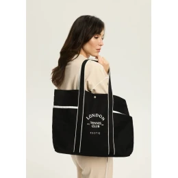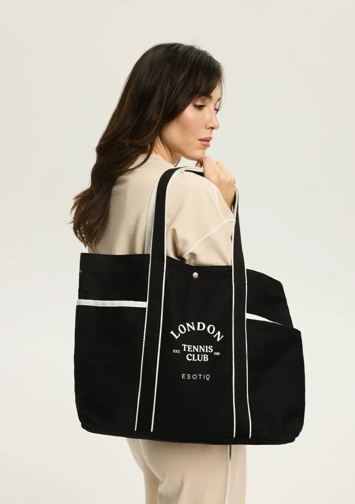 Látková letní taška značky Esotiq je praktickým doplňkem na pláž nebo k bazénu, nabízí dostatek prostoru pro všechny nezbytnosti a chrání je před pískem. Uvnitř se nachází vnitřní kapsa, zapínání je na kovový cvok. Z vnější strany má po obvodu kapsy na opalovací krém, oblíbenou knihu a jiné nezbytnosti na pláž. Dno tašky je zesílené a dobře drží tvar.